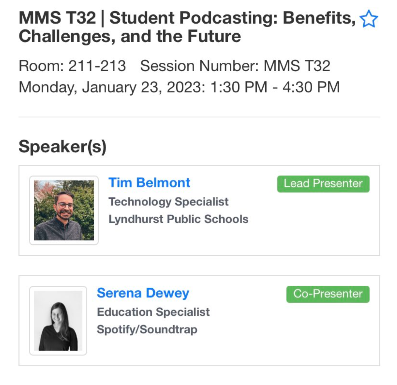 - 1/23/23: FETC 2023 - The Power of Student Podcasting w/ Serena Dewey (New Orleans, LO)