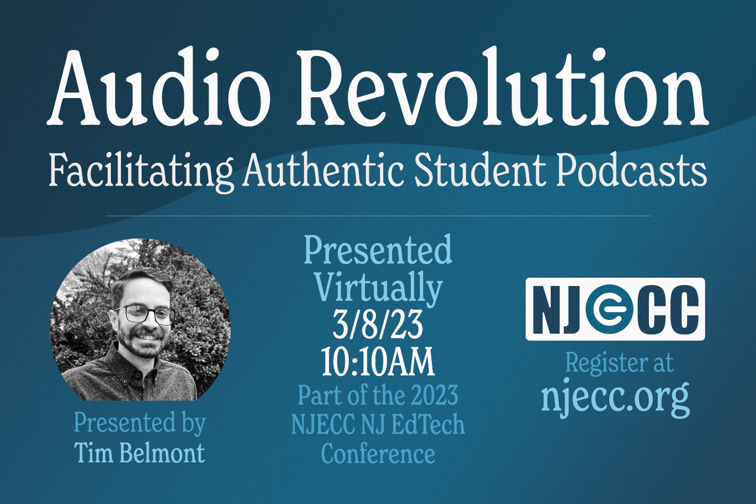- 3/8/23: NJECC NJ Educational Technology Conference 2023 - Audio Revolution: Facilitating Authentic Student Podcasts (Virtual)